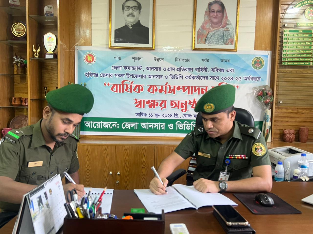 জেলা কমান্ড্যান্ট, হবিগঞ্জ এবং উপজেলা আনসার ও ভিডিপি কর্ম,কর্তা, আজমিরীগঞ্জ, হবিগঞ্জ এর মধ্যে স্বাক্ষরিত বার্ষিক কর্মসম্পাদন চুক্তি